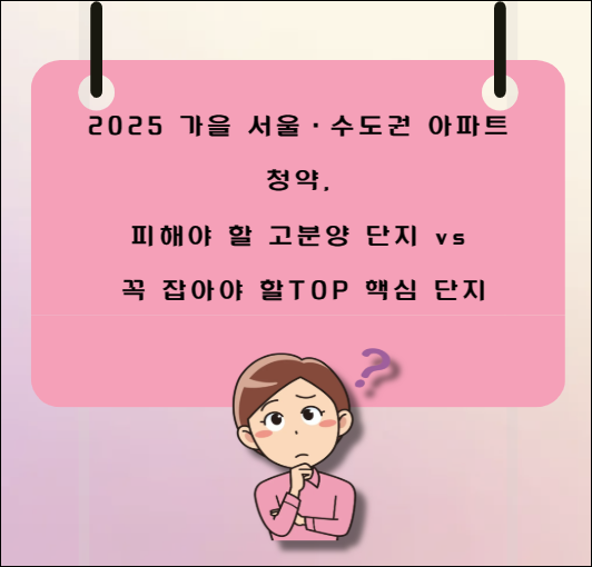 안녕하세요🍀 가을, 서울과 수도권에서 쏟아지는 대규모 청약 물량을 앞두고 반드시 노려야 할 진짜 '로또' 단지와 절대 피해야 할 위험 단지까지 한눈에 보기 쉽게 정리했어요! 📊 2025년 가을 분양 트렌드, 현실 시세, 청약가점 준비, 시세차익 구조까지 완전 분석✨ 내 집 마련, 꼭 성공하고 싶은 분들을 위한 알짜 정보 담았으니 지금 바로 확인해보세요!