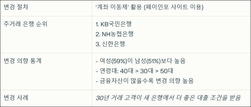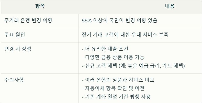주의: 은행 변경은 개인의 재정 상황에 따라 신중히 결정해야 합니다. 장기적인 관점에서 자신에게 가장 적합한 선택을 하는 것이 중요합니다.