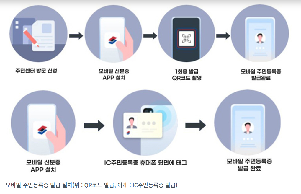 2024년 12월 27일부터 17세 이상의 국민은 모바일 주민등록증을 신청할 수 있다. 새로운 법 시행으로 모바일 주민등록증은 실물 주민등록증을 대체하며, 블록체인 등의 보안 기술로 안전하게 본인 확인이 가능하다. 시범 발급 후 2025년부터 전국민이 이용할 수 있게 된다.