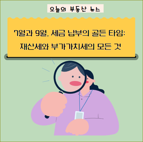 7, 9월은 재산세와 부가가치세를 납부해야 하는 매우 중요한 달입니다. 특히 상가나 사무실을 임대하는 임대인 분들께는 여러 가지 신경 쓸 일이 많을 수밖에 없습니다. 재산세는 7월 30일까지, 부가세는 7월 25일까지 반드시 납부해야만 합니다. 만약 이 기한을 넘기게 되면 3%의 가산세가 부과되니, 정확한 납부 기한을 지키는 것이 필수적입니다.
